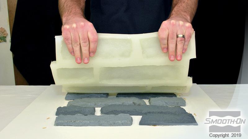 Using The Mold - If using as a mold material, a release agent should be applied to the mold before each casting. The type of release agent to use depends on the material being cast. The proper release agent for wax, liquid rubber or thermosetting materials (i.e. Smooth-On liquid plastics) is a spray release made specifically for mold making (available from Smooth-On or your distributor). Prior to casting gypsum plaster materials, sponge the mold with a soap solution for better plaster flow and easy release. Aquacon™ Water Based Release Concentrate (available from Smooth-On) is recommended for releasing abrasive materials like concrete.