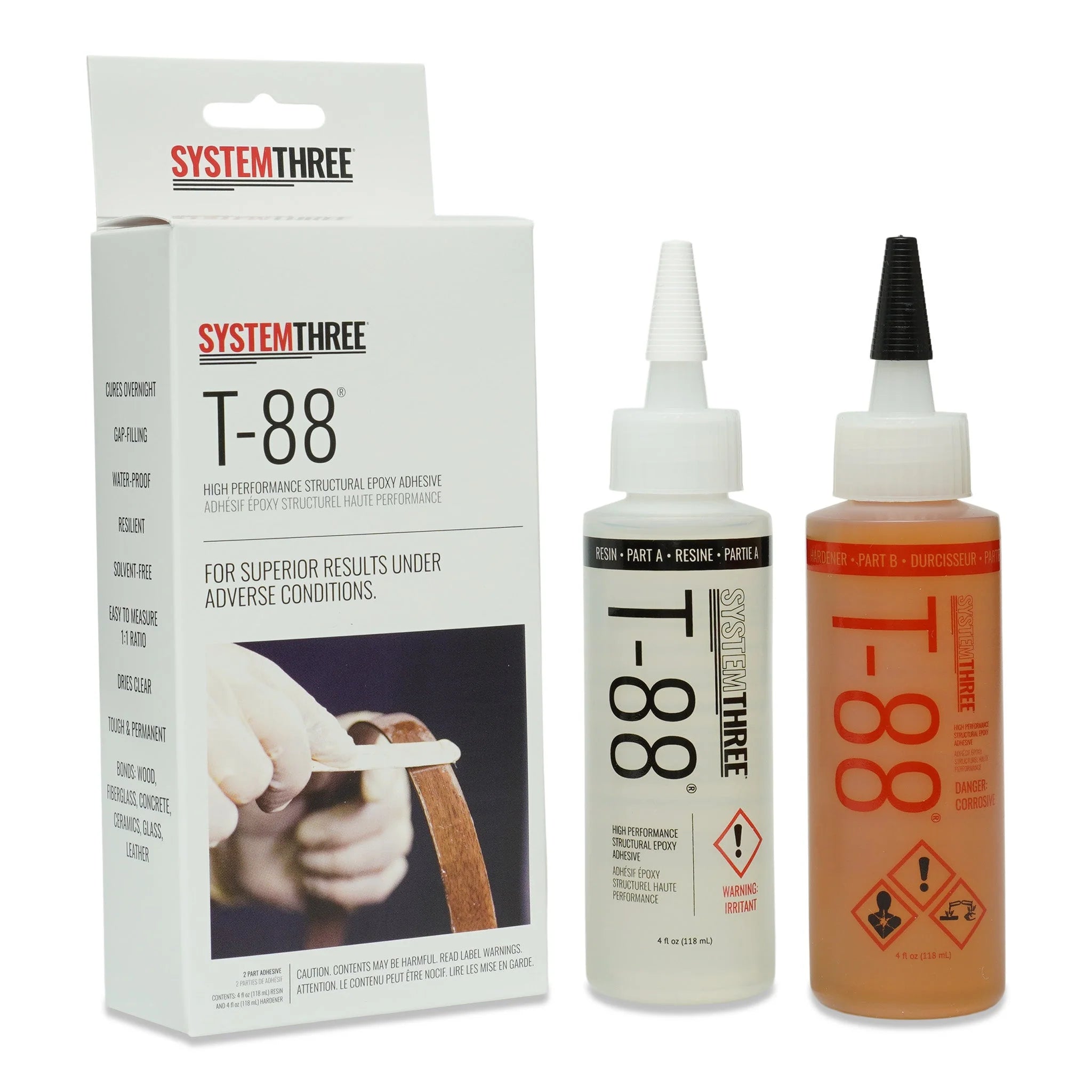 T-88 is a high-performance, non-brittle, two-part epoxy adhesive designed to give superior results under adverse conditions. The adhesive may be used without modifications in normally fitted joints, and will cure without shrinkage.